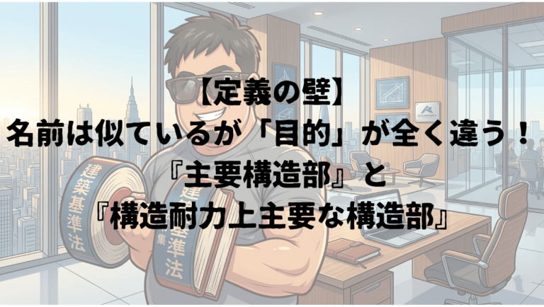 相談者:匿名希望さん(設計事務所新人・23歳) 「法令集を引いていると、『主要構造部』と『構造耐力上主要な構造部』が別々に出てきて混乱します。 何が違うんですか? 同じ柱や梁じ […]